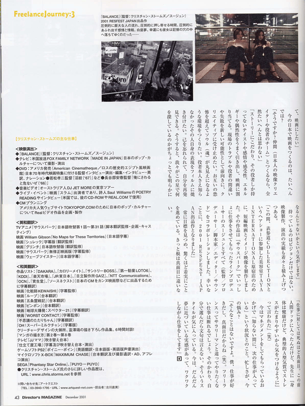Director's Magazine 12月2001年 FreelanceJourney クリスチャン・ストームズ ディレクター・翻訳